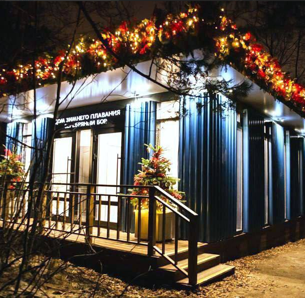 Домик выполнен на стальном каркасе и облицован цветными 3D-панелями. Он стал комфортным и элегантным местом для отдыха после заплыва. +1 к уровню культуры зимних заплывов!