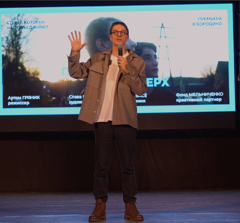 В Бородино эффекту погружения сопутствовала премьера документалки про стены, которые объединяют, — про муралы — «ПОСМОТРИТЕ НАВЕРХ». Собрали полный зал главного ДК, а это 400 мест