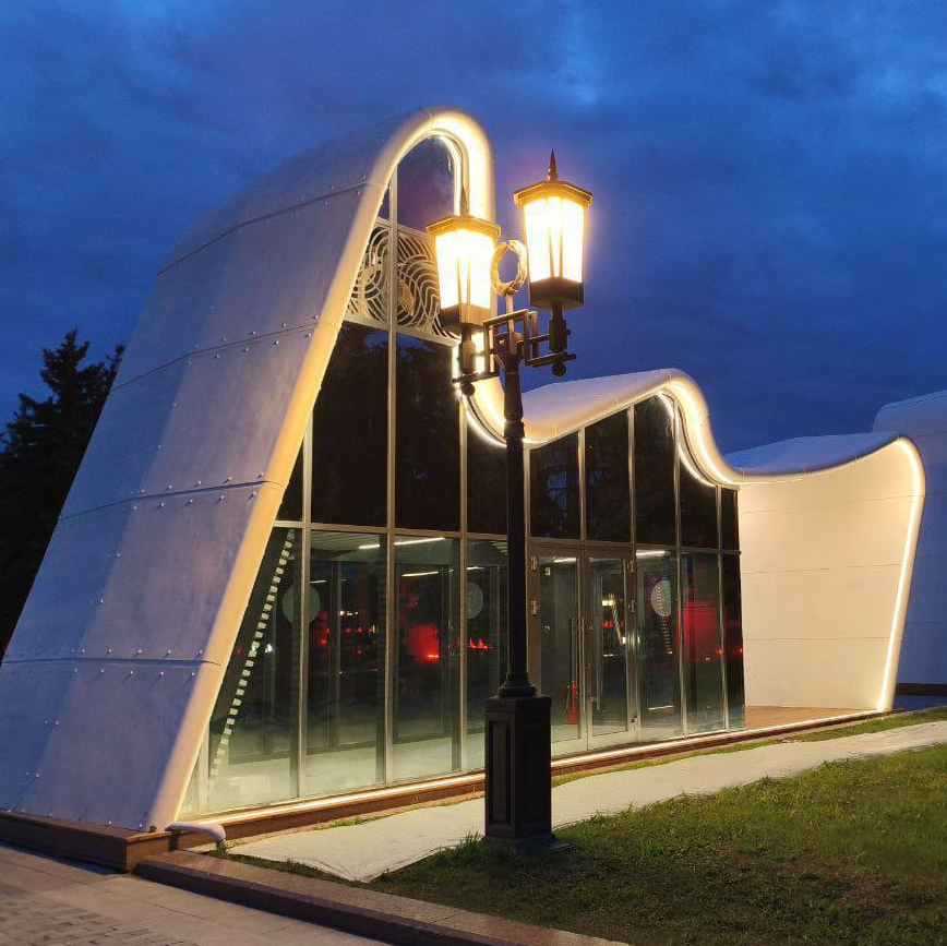 Представленные фотографии демонстрируют вечерний вид территории и подчеркивают благоустроенность и архитектурную гармонию объектов, созданных с учётом городской среды.
