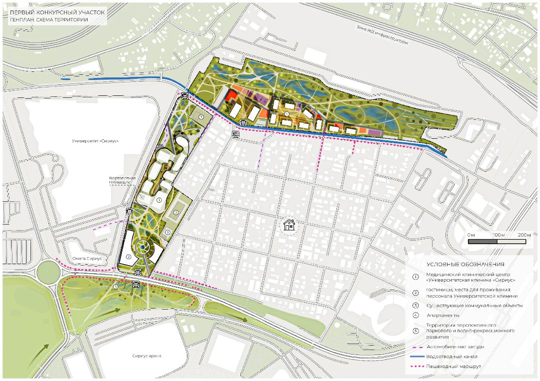 Проект направлен на разработку мастер-плана двух участков, расположенных на федеральной территории «Сириус» г. Сочи. Первый участок предусматривает развитие медицинского кластера. Второй интегрирован со студенческим кампусом. Каждый участок объединяет множество функций и инженерных решений, отражающих современные технологические и экологические принципы.