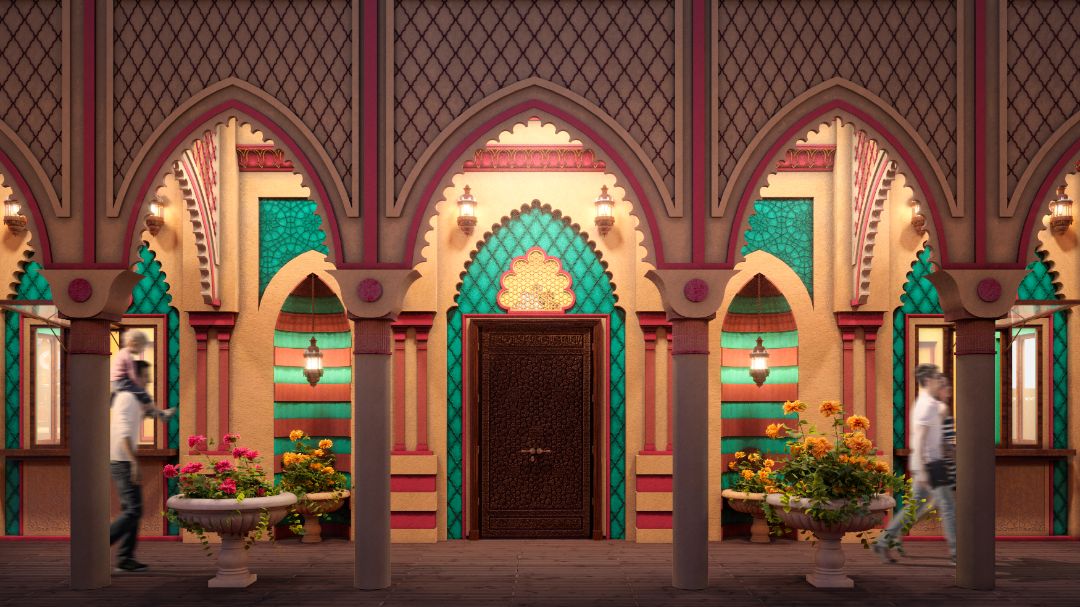 Архитектура марокканских и мавританских городов стала основой для создания этого стиля. Архитектурные решения переняли их основные черты: кубические объемы. Декор довольно простой, местами грубоватый. Луковичные арки, заполняющие плоскости арабесковыми орнаментами и цветочными мотивами, а также большое количество решеток.