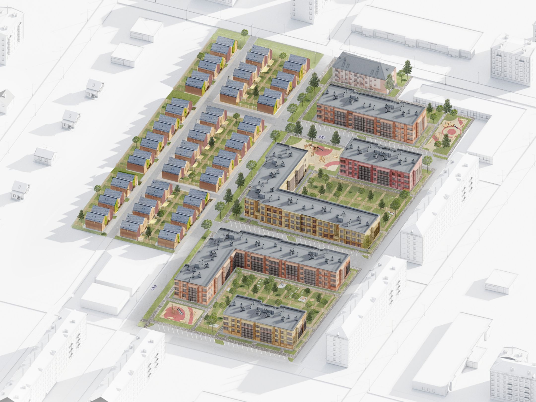 14 000 м² жилых площадей, 160 новых квартир, 56 новых домов, более 150 м² детских площадок, 34 500 м² новых жилых площадей, более 300м² детских площадок, открытый вид на долину биатлона.