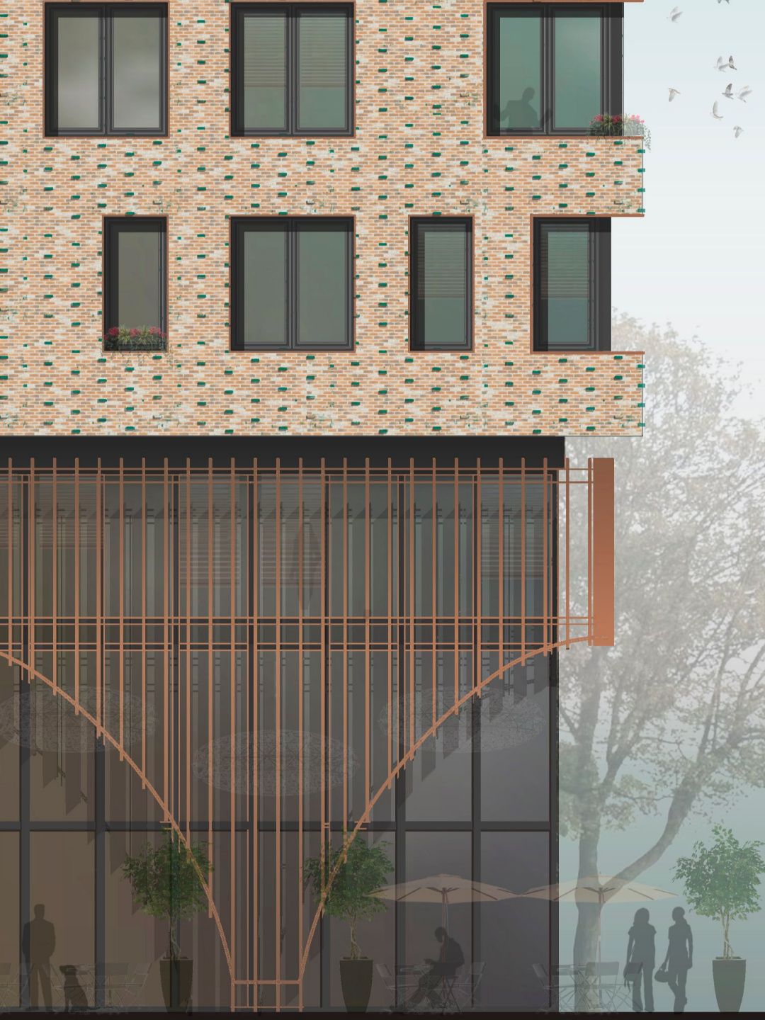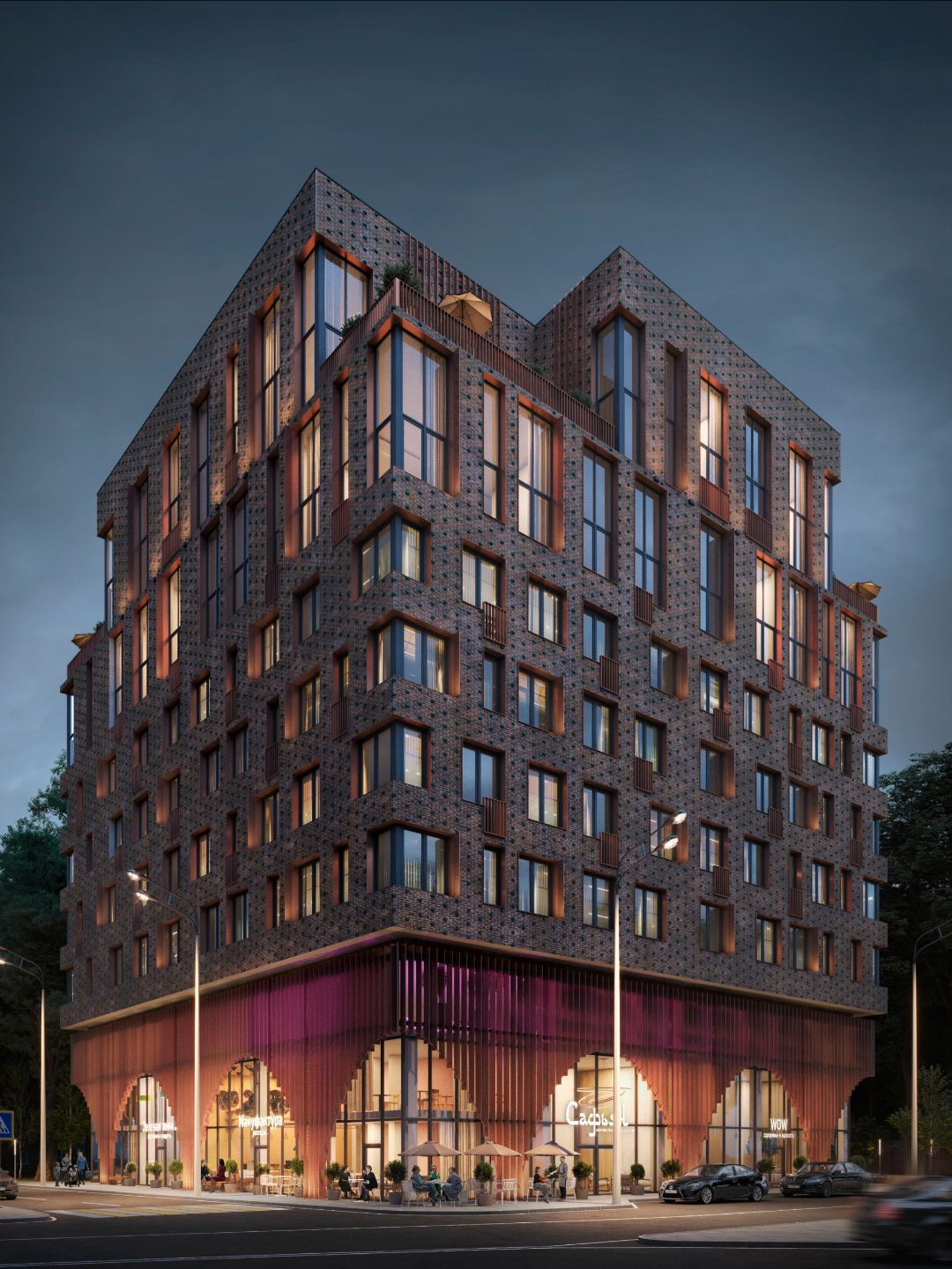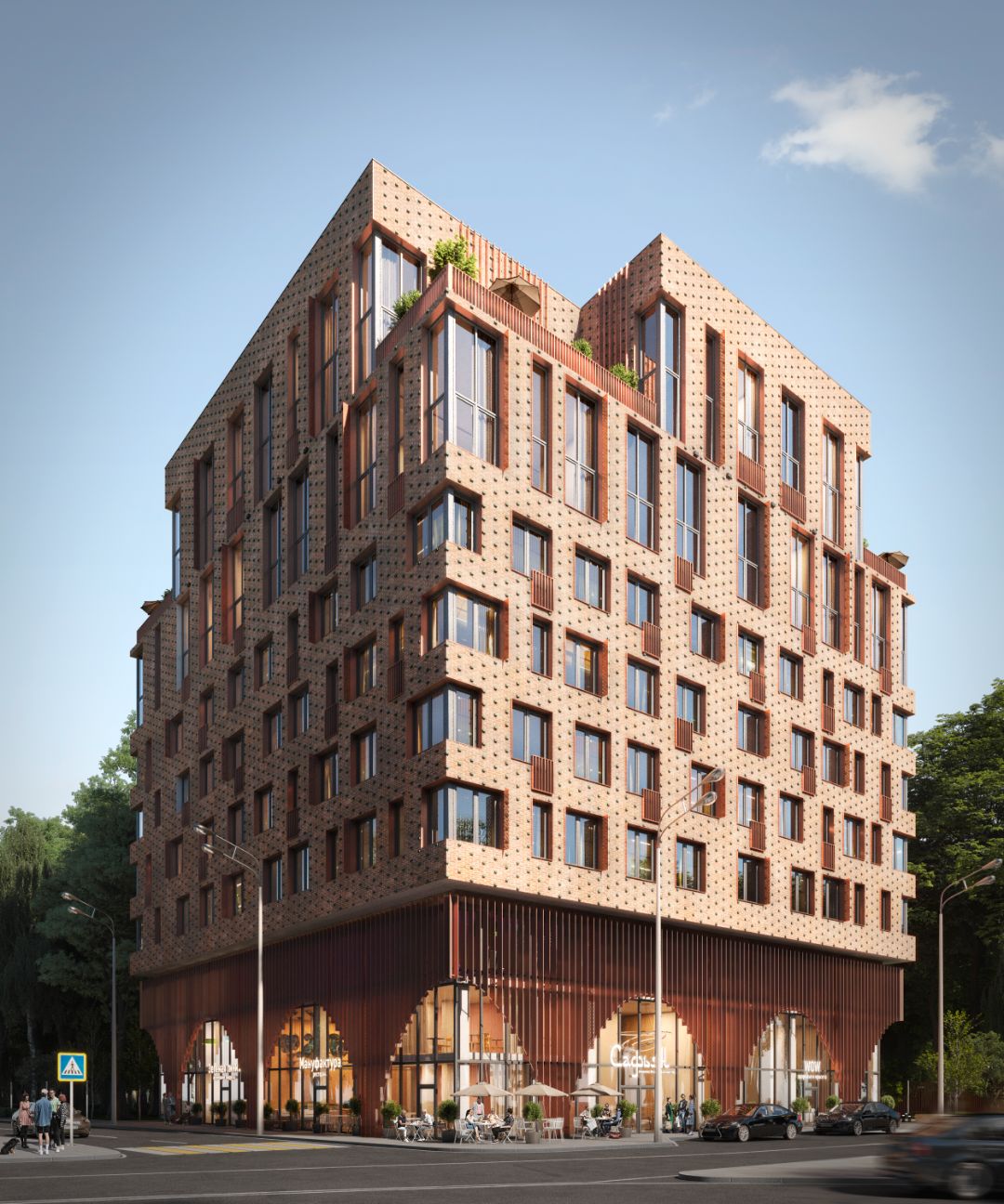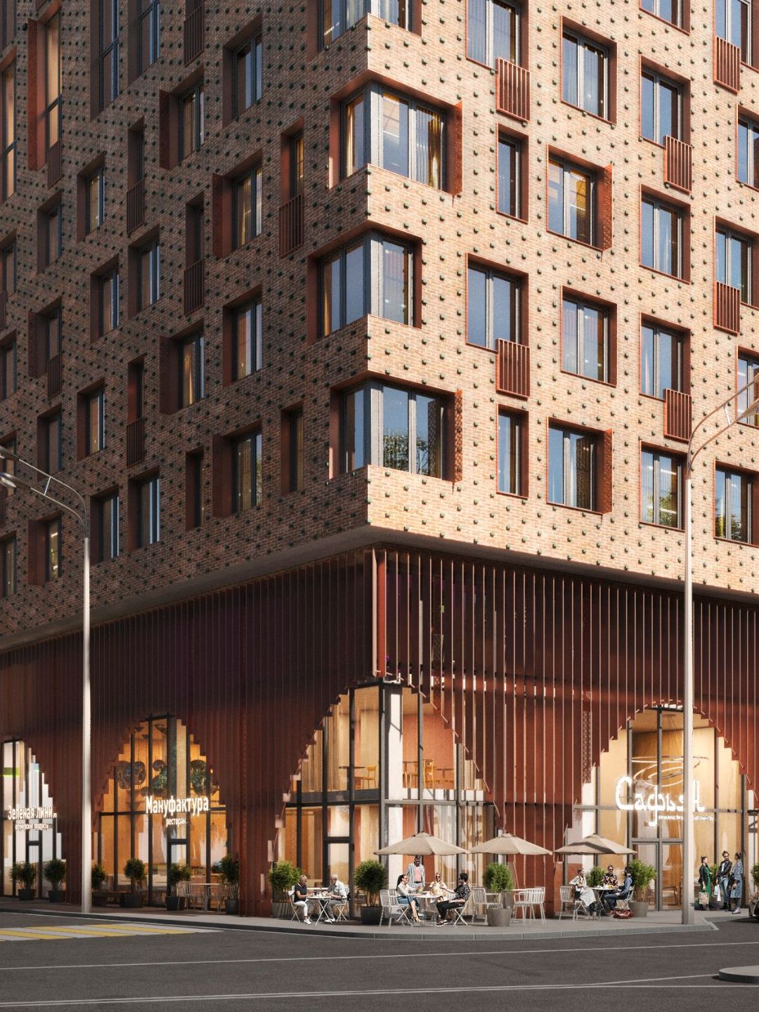 Основными концепциями, определившими направление архитектурной мысли, были: будущее название комплекса - «Сафьян» и территориальное расположение здания в районе, некогда богатом обрабатывающей и кожевенной промышленностью. Пространственно-планировочные решения в первую очередь подчинены функциональному разделению по критерию «приватности»: жилая зона и общественная зона, которая включает в себя арендуемые помещения, зону бизнес-лаунжа и административный блок.